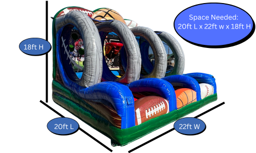 Dive into the ultimate inflatable sports experience with our Inflatable Sports Extravaganza! This giant, colorful inflatable arena combines the thrill of football, basketball, and baseball into one action-packed game zone.