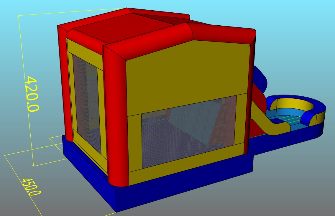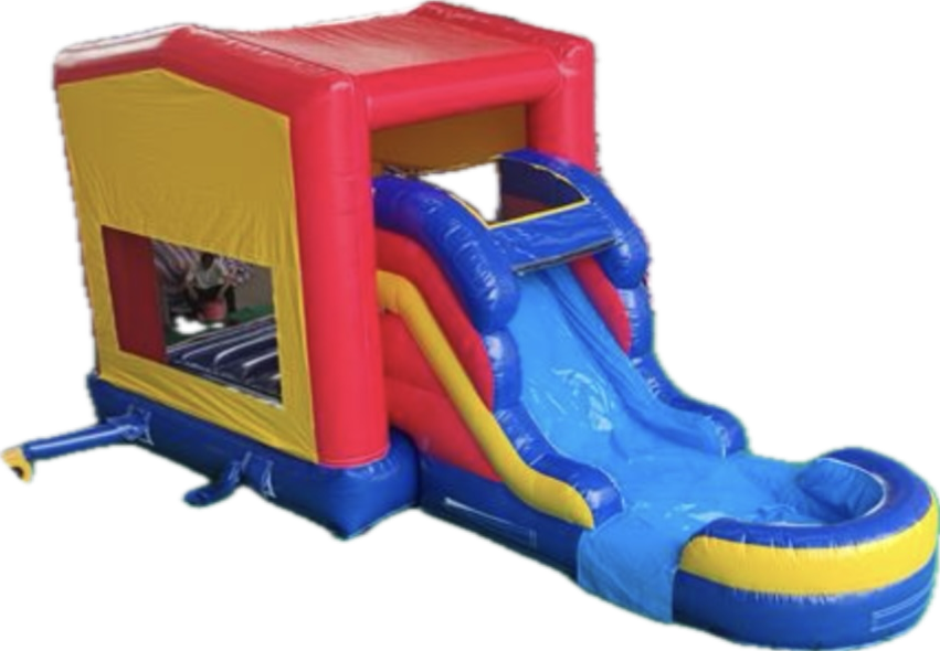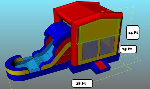 Description: This is our 4 in 1 Jumbo Dual Lane combo. This is one of our most popular combos because it's convenient size and shape makes it accessible to set up on a regular backyard. It's mashing net on all of its sides makes it easier for parents to supervise their kids inside. It includes a bouncing area, a climbing and dual lane slide as well an inflatable basketball hoop inside (we no not provide the mini basketballs for it). We can also customize the top front of the item with the various themed banners we carry. Call us now and ask for availability! You will only need a Space required 17L x 32W x 18H feet of clearance space for this standard size jumpy. Its actual size is 15L x 28W x 16H feet. The bounce house holds 8 children from 2-12 years old or 6 from 9-15 years old. It can be set up on grass, asphalt or concrete. There is an additional fee to set up on concrete or turf. We will need a 3-4 feet access clearance and a clear path on the entrance (if the set up is in your backyard). The slide on this item has only one lane. Please make sure it is used properly. Safety Information: We do not recommend having different age range children simultaneously inside the bouncy. Adult supervision is needed at all times. Please do not let kids climb up the sliding area, it is dangerous for them. Set up and Delivery Information: Remember! We deliver to parks, but additional fees apply to these deliveries. Also keep in mind we will probably need to supply a generator for the item, if it will be set up on a park. Generators are guaranteed to work for 6 hours because of their gas capacity. If you want to keep the item for longer periods of time, you can do so by refilling the generator. **One 15 amp power outlet required within 50 feet. (Do not plug any other device into the same outlet) |