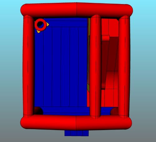 This is our 4 in 1 Space Saver combo. This is one of our most popular combos because it's convenient size and shape makes it accessible to set up on a regular backyard. It's mashing net on all of its sides makes it easier for parents to supervise their kids inside. It includes a bouncing area, a climbing and sliding area enclosed inside as well an inflatable basketball hoop inside (we do not provide the mini basketballs for it). We can also customize the top front of the item with the various themed banners we carry. The slide goes to the inside of the bounce house, so kids don't have to exit it to get back in! Call us now and ask for availability!