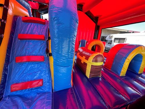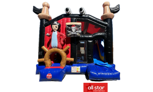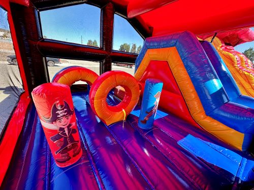 This is our 4 in 1 Pirate combo! Aye mate! Shiver my timbers! Pirates, treasures, adventure and high waters. This inflatable is filled with thrilling activities for kids to have an overseas experience. It has a jumping area, a slide, climbing wall and pop-up obstacles. Book it now!