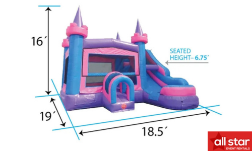 Description: This item's convenient size and shape makes it accessible to set up on a regular backyard. It's meshing net on all of its sides makes it easier for parents to supervise their kids inside. It includes a bouncing area, a climbing and sliding area as well an inflatable basketball hoop inside (we do not provide the mini basketballs for it). We can also customize the top front of the item with the various themed banners we carry. Call us now and ask for availability! The bounce accommodates 8 children from 2-12 years old or 6 from 9-15 years old. It can be set up on grass, asphalt or concrete. We will need a 3-4 feet access clearance and a clear path on the entrance (if the setup is in your backyard). The slide on this item has only one lane. Please make sure it is used properly. |
