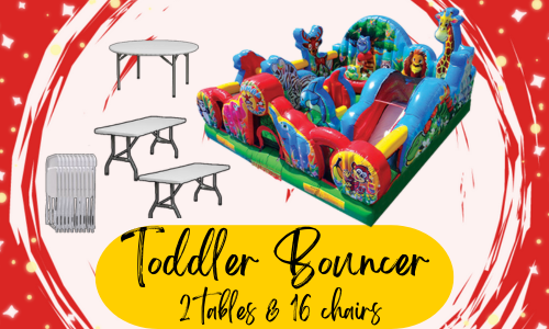 Enjoy this awesome toddler package! Get a toddler combo, two tables and sixteen chairs for a bundle deal. For the combo, you can choose between the following combos: