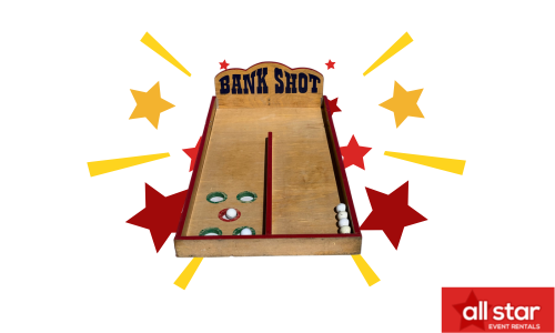 This carnival game is different but wonderful for any party. You get three chances to get your balls in the red holes, you have to bank your skills, so strategy is key.42” x 18”. Requires a table to sit on.