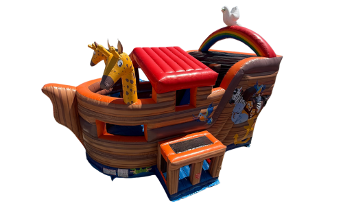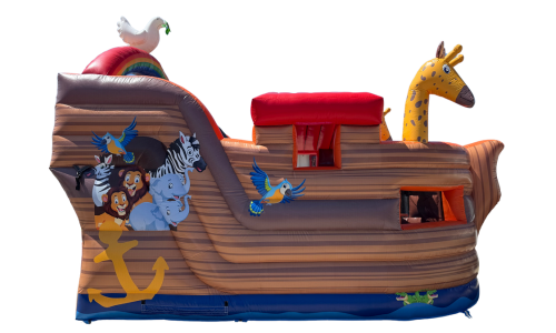 Safari Ship Inflatable Bounce House – Jungle Adventure-Themed BouncerSet sail on a wild jungle adventure with our Safari Ship Inflatable Bounce House! This uniquely designed inflatable attraction resembles a safari-themed ship, bringing vibrant animal characters and colorful features that are sure to wow kids and guests at any event. With playful illustrations of giraffes, monkeys, zebras, elephants, and birds, this inflatable delivers a fun and immersive experience. A bold rainbow arch with a dove at the back adds a cheerful touch, while the ship’s detailed wood-look design gives it a realistic and exciting visual appeal. Perfect for birthday parties, school events, church gatherings, and community festivals, this inflatable bounce house offers endless active fun with its spacious jumping area, crawl-through entrance, and built-in slide. Key Features: Safari Ship Design – A one-of-a-kind inflatable styled like a safari adventure vessel Animal-Themed Artwork – Features giraffes, elephants, monkeys, zebras, and more Bright Rainbow Arch – Decorative rainbow and dove bring color and charm Crawl-Through Entryway – Kid-friendly access point designed for safety and fun Spacious Bounce Area – Enough room for multiple kids to jump, bounce, and play Mesh Safety Windows – Keeps the play area ventilated and allows adult supervision Great for Kids Ages 3–10 – Ideal for parties, school fun days, and family events |